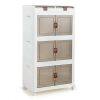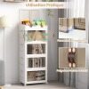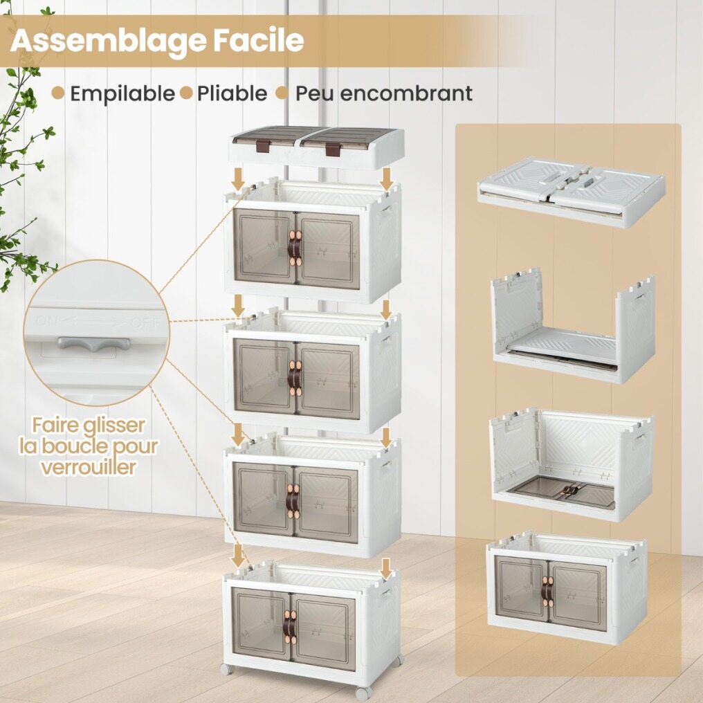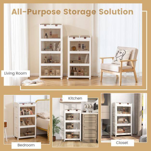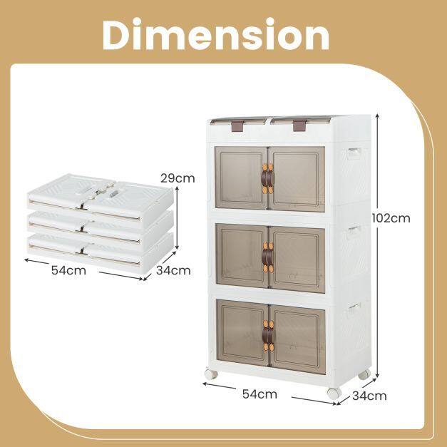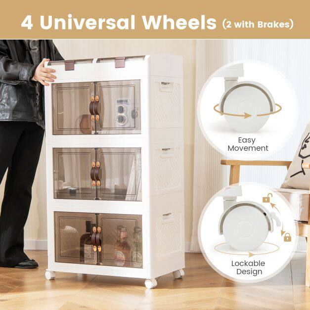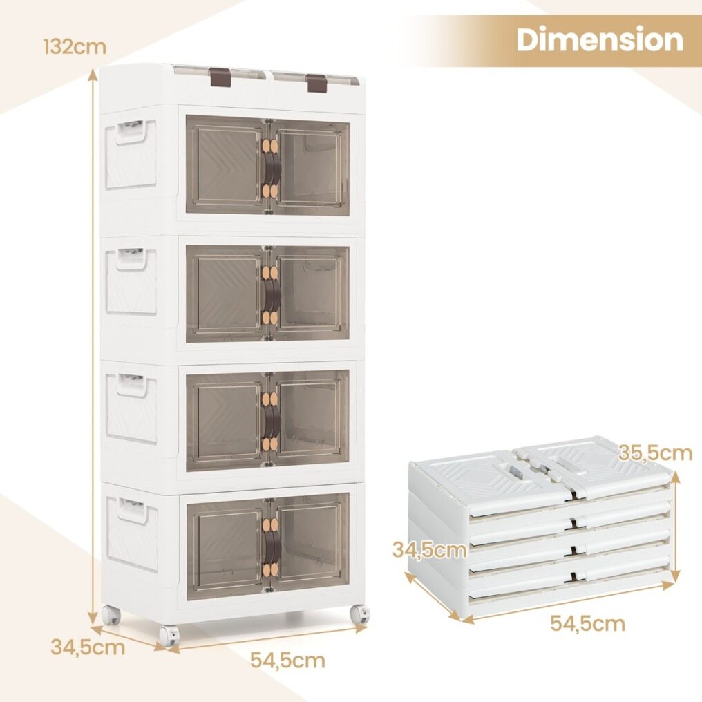 When needed, simply expand and use them as a convenient storage solution. When not in use, the storage boxes can be collapsed for compact storage. There are 3 stackable plastic bins and 2 top compartments to create a coordinated organization, including clothes, snacks, and books, etc. Besides, the closet storage organizer features front-opening magnetic doors, providing quick and easy access to your items. More, 4 wheels allow you to effortlessly move them around your home. Simplify your storage needs with these functional and versatile storage bins! If you are looking for such a product, do not hesitate to buy it!