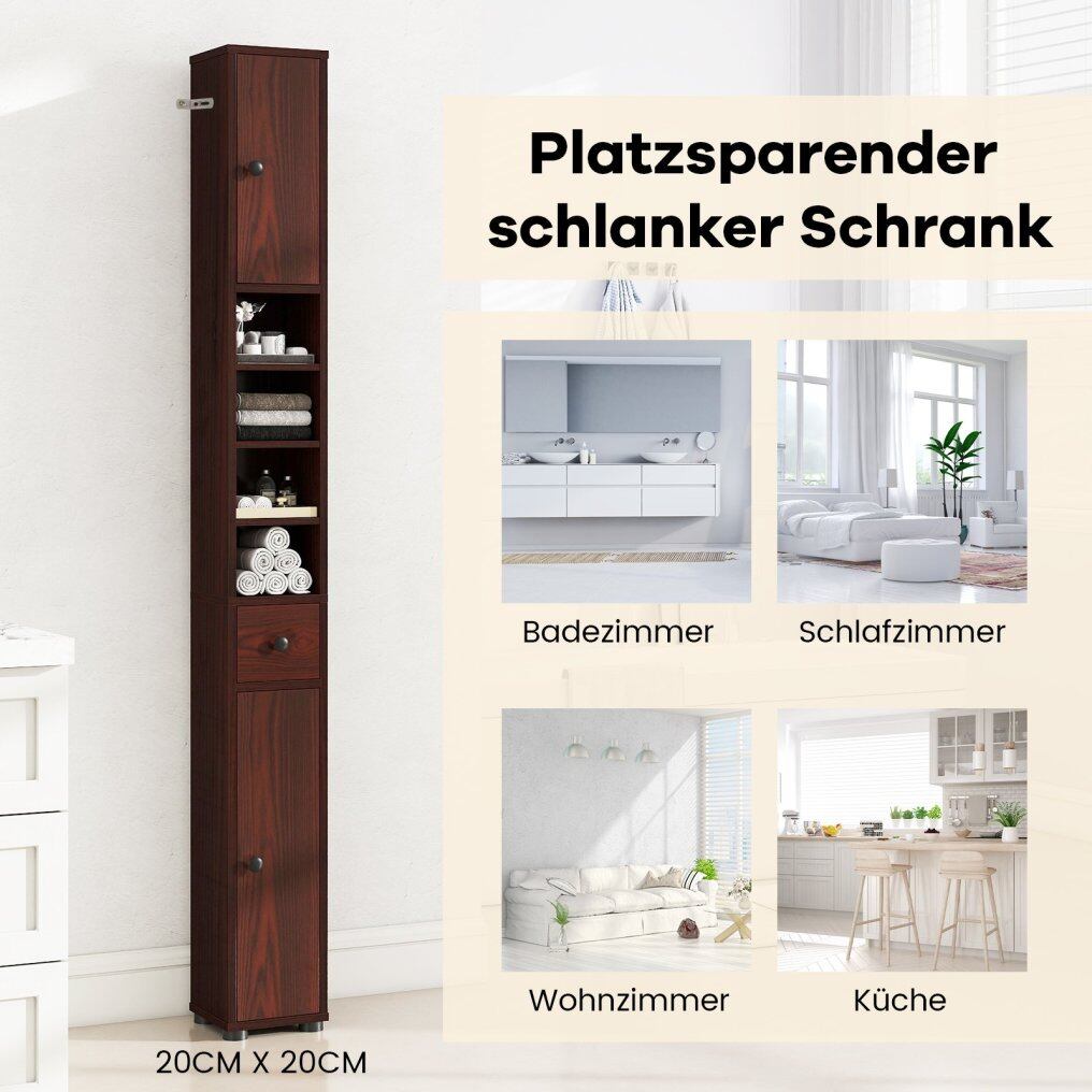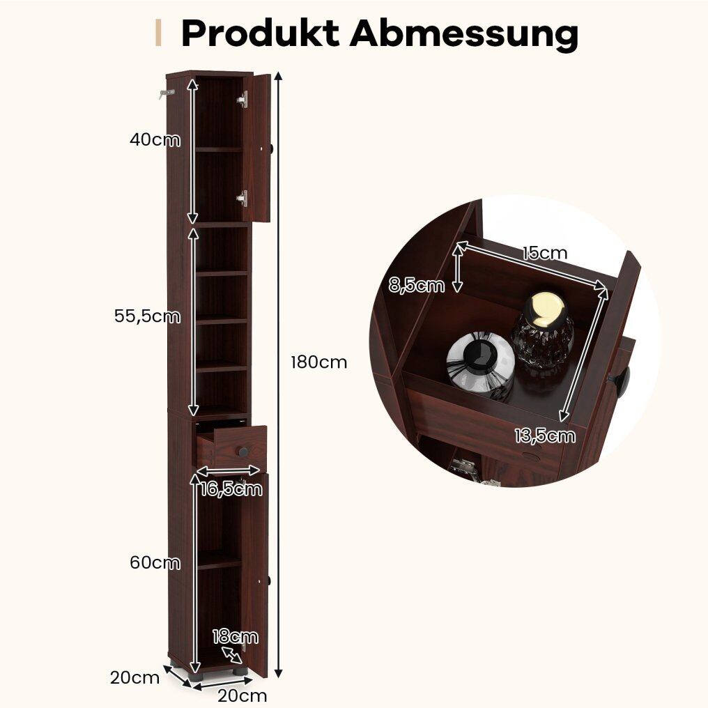 Perfect for small spaces: Measuring just 20 x 20 cm (L x W), this space-saving, narrow bathroom cabinet is designed to fit into tight spaces and corners. Optimize your space in the bathroom, bedroom, living room, or kitchen with this versatile tall cabinet, which allows you to make the most of your available floor space.