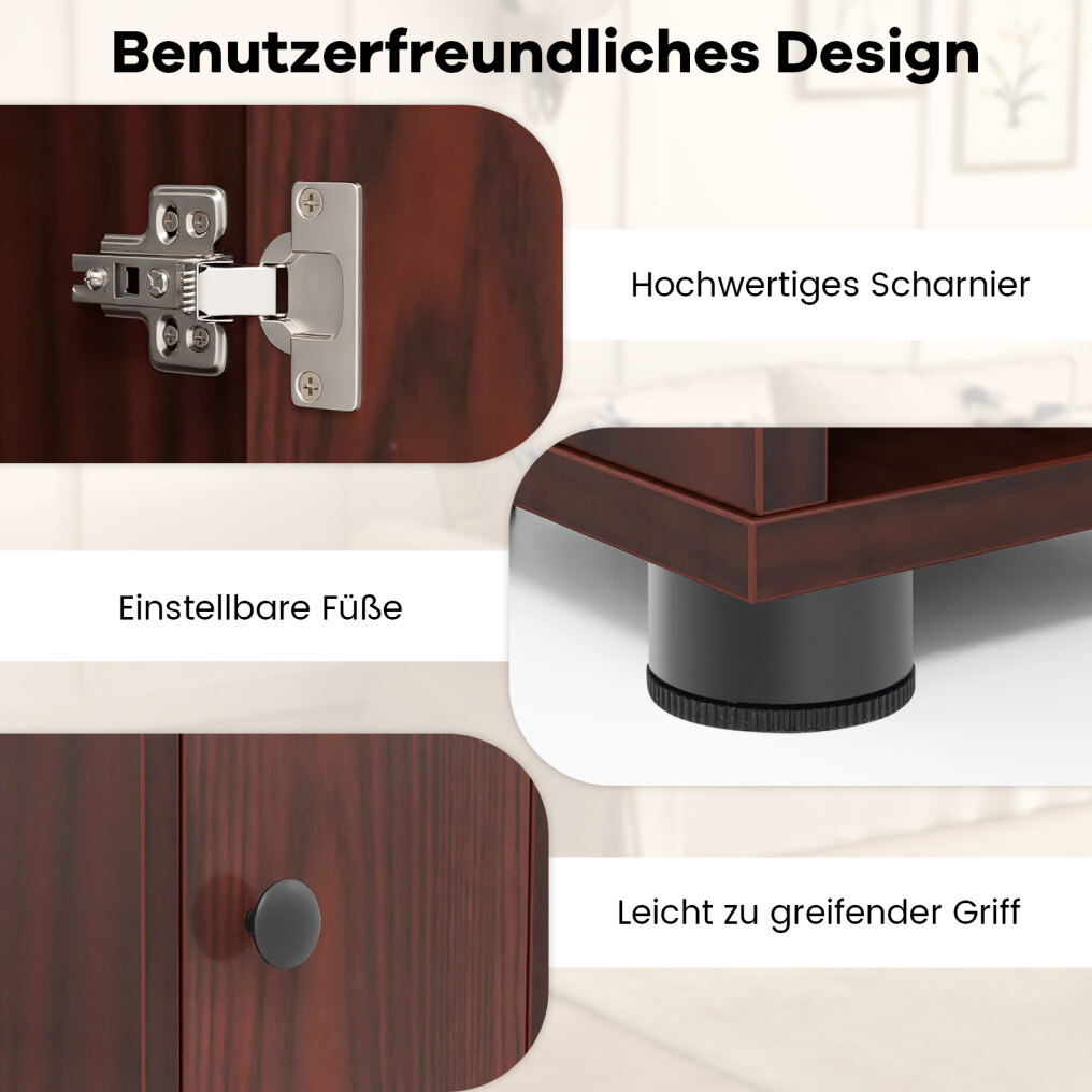 Sturdy construction: This storage cabinet, made of high-quality MDF, exudes quality with its first-class workmanship, ensuring a long lifespan. Overall, its robust construction offers exceptional stability and ensures that your belongings are stored safely.