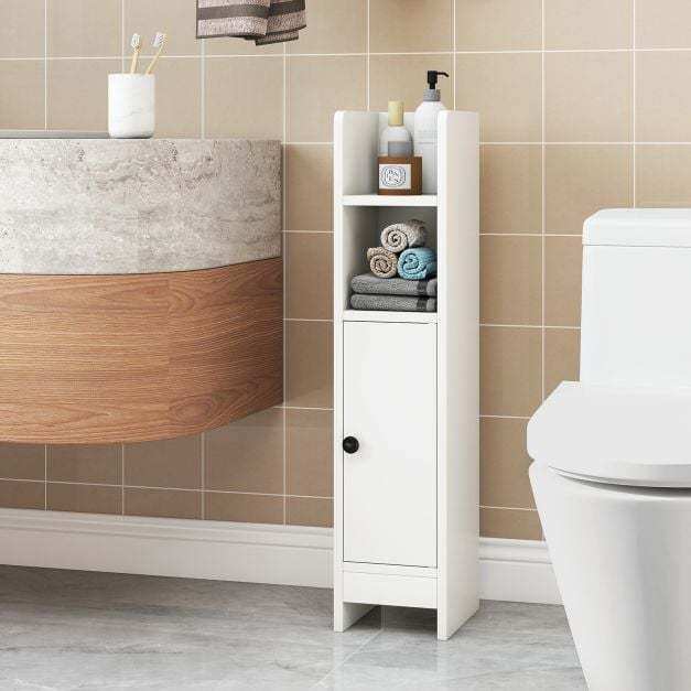 Versatile storage solution: Equipped with 2 open shelves and a closed cabinet, this bathroom organizer offers ample space for toiletries, toilet paper, towels and other essentials.