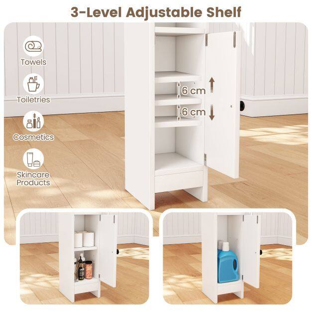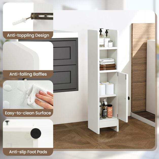 Increased safety features: This standing storage cabinet features an anti-tip plate on top to prevent items from tipping over, and a magnetic latch on the cabinet door for secure closure. It also comes with two anti-tip devices for added security.