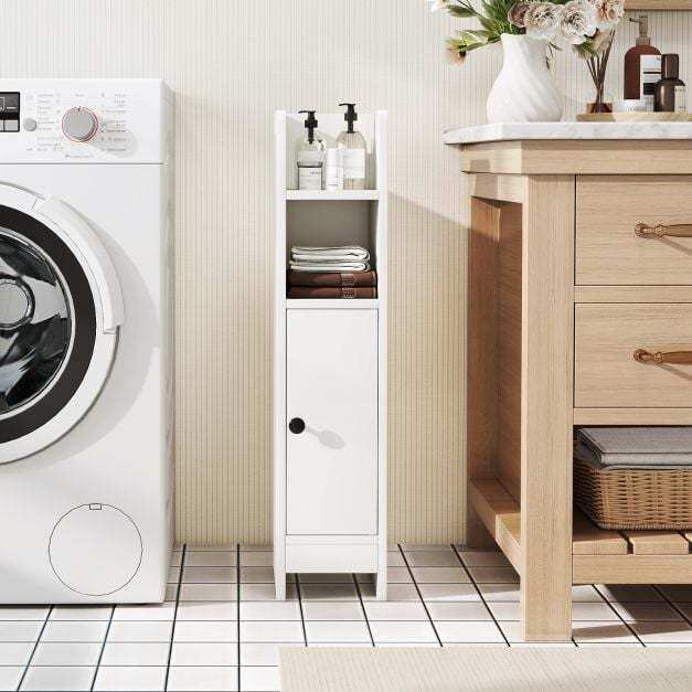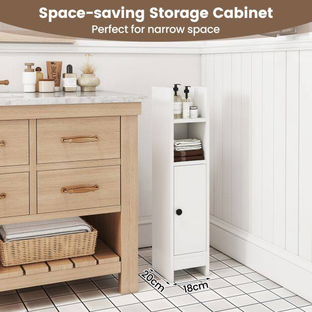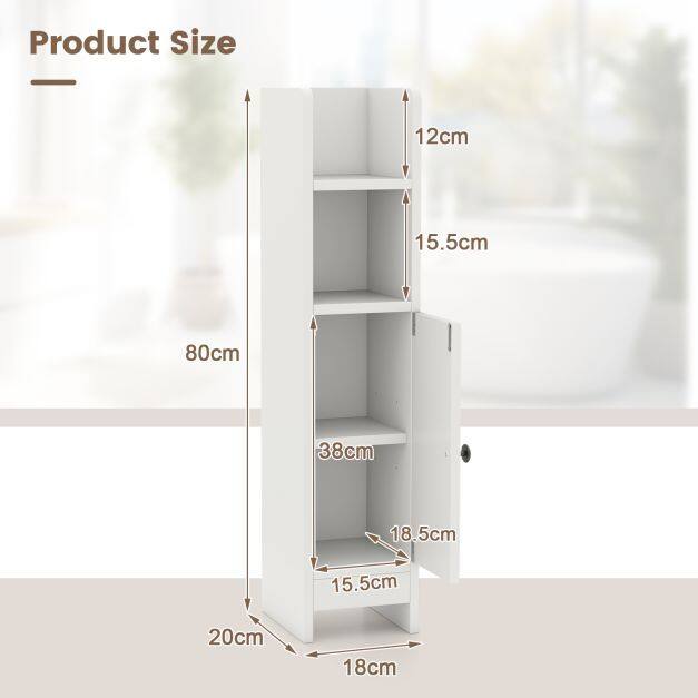 Space-saving design: Perfect for narrow spaces, this small bathroom floor cabinet measures only 20 cm x 18 cm x 80 cm (L x W x H). Its compact size makes it perfect for small bathrooms or areas where space is limited.