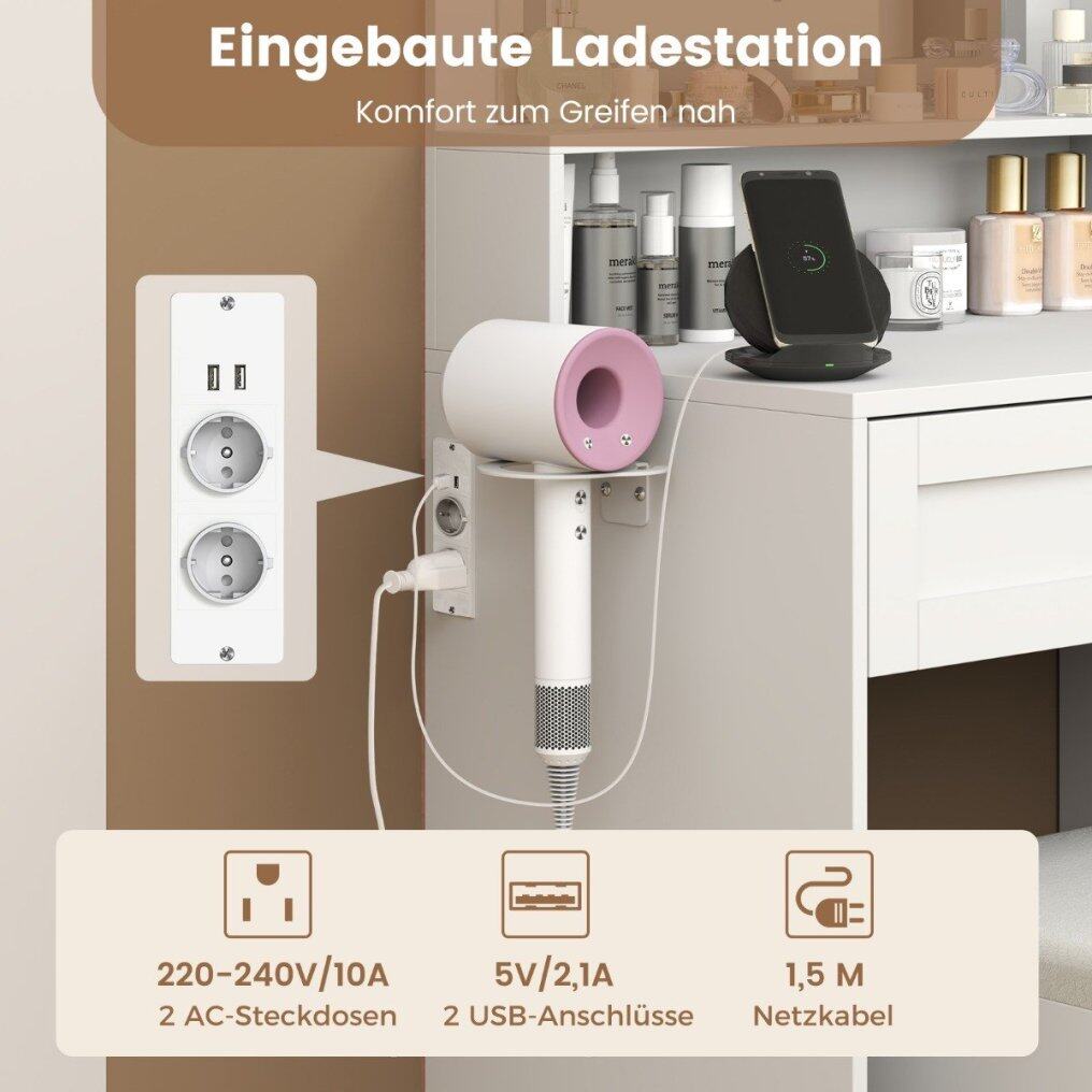 Integrated Charging Station: The charging station is equipped with 2 USB ports and 2 AC outlets. You can charge your devices while you get ready, giving you ultimate convenience within reach.