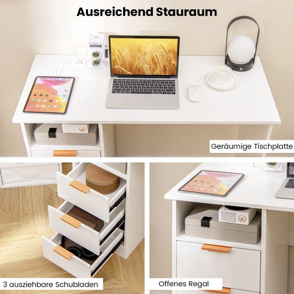 Easy Organization: Enjoy ample storage space with 3 pull-out drawers and an open storage compartment to neatly organize office supplies and personal items, creating a clutter-free workspace that promotes focus and efficiency. Experience organization at its finest with this spacious desk.