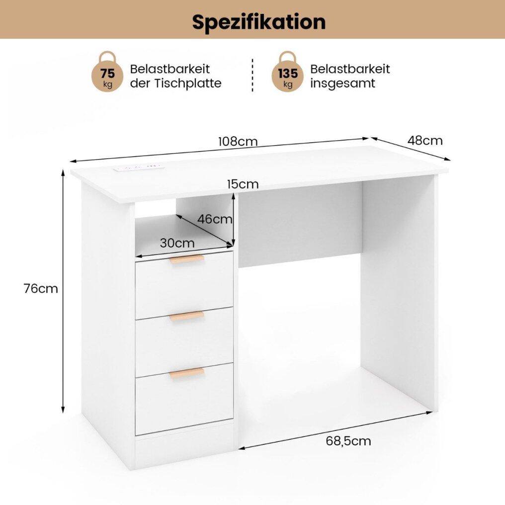 Transform your workspace into a powerhouse of productivity and style with our modern desk! Easily charge all your devices with integrated AC, USB, and Type-C ports. Store clutter in sleek drawers, while an open compartment awaits your essentials. This sturdy desk is built to last and can easily support up to 135 kg. Smooth metal rails allow each drawer to glide open with whisper-quiet ease, and non-slip foot pads keep your floors pristine. Perfectly adaptable, it's more than just a desk—it's your next home office hero, a student's best study buddy, or even a chic vanity. Upgrade your space now with this multifunctional masterpiece!