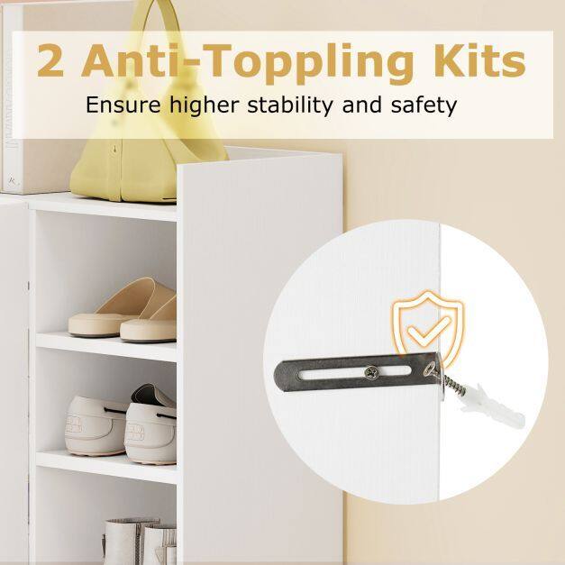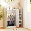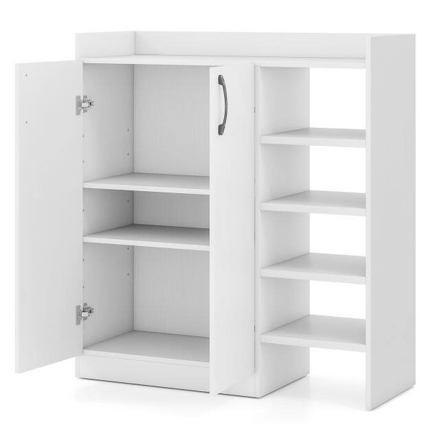 【Open and Closed Storage Space】This bookcase includes 3 open compartments. 【Large Storage Capacity】The shoe cabinet offers multiple options for your storage needs. You can place keys, bags, decorative items, and other daily essentials on the wide top. The 2-door cabinet allows you to hide shoes out of sight, while the 5 open compartments are ideal for storing your most frequently worn shoes.