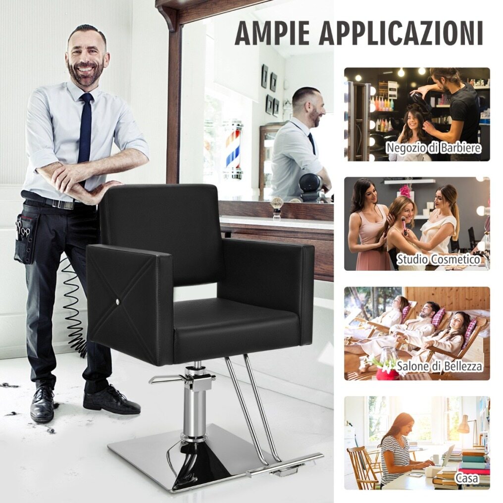 Ergonomic Padded Seat: Upholstered in high-quality PVC, waterproof and easy to clean, with a smooth, glossy surface for comfortable seating. The hairdressing chair is filled with high-density, ultra-soft and resilient sponges. It also features armrests and a backrest for extra support and maximum comfort.