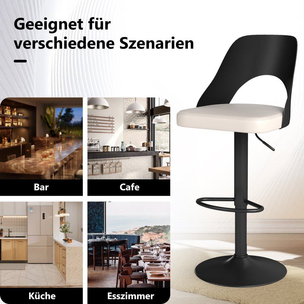 Elevate your space with our contemporary bar stool set. The bar stool is designed with sleek lines and a minimalist aesthetic that will suit any modern space, from bars to kitchens. Comfort and functionality meet with its comfortable seat made of quality faux leather, waterproof and wear-resistant, filled with soft sponge for a cozy experience. The ergonomic backrest and widened footrest ensure comfort during extended use, while the adjustable height and 360° swivel ability offer versatility and ease. Enhance the look and functionality of your space with this stylish, comfortable and sturdy bar stool set.