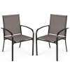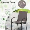 The patio dining chairs feature breathable fabric that enhances comfort, especially during warm weather. The tilted backrests provide excellent lumbar support, ensuring a pleasant dining experience even during extended periods of sitting. Designed with ergonomic armrests, these outdoor bistro chairs reduce strain on the elbow, promoting a relaxed posture while dining or lounging outdoors. Constructed with a powder-coated frame, the bistro dining chairs are not only stylish but also built to last. The fast-drying fabric adds practicality, making these chairs easy to maintain. To further enhance the overall strength and stability of the outdoor diner chairs, the backrests are equipped with 2 crossbars. Additionally, the space-saving patio chairs allow you to stack them when not in use.
