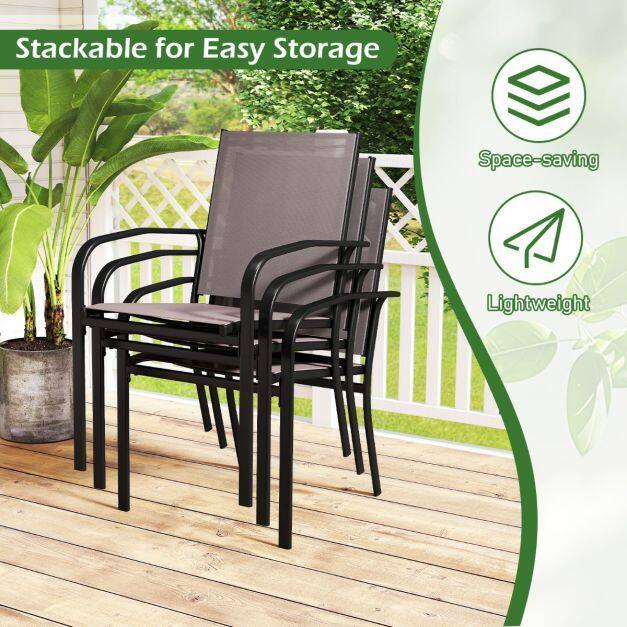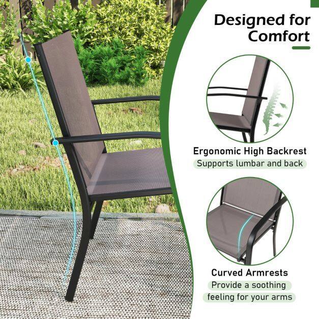 Designed for Comfort: The stackable outdoor chairs are crafted with ergonomic backrests and curved armrests to ensure a perfect fit for your body, providing a comfy sitting experience during extended periods of sitting. Plus, the breathable fabric used can prevent stuffy feeling.