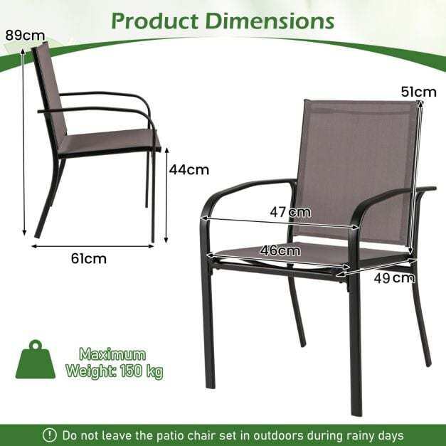Sturdy and Enduring Structure: Constructed with a powder-coated metal frame, the patio sling chairs are not only sturdy but also built to last. The quick-drying and sun-proof fabrics further enhance their longevity while minimizing maintenance requirements. Please leave the dining chair to rain for extended use.