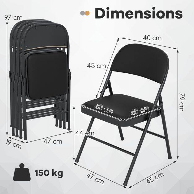 Sturdy Metal Structure: Engineered with a triangle metal frame, each foldable chair provides optimal longevity and supports up to 150kg. It is also equipped with anti-slip foot pads that protect your floors from scratches.