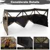 ● Unmatched Panoramic View: The hunting blind features 4 one-way see-through fabric panels that offer 360° visibility, allowing hunters to observe every angle while remaining concealed from wildlife. Boasting a spacious 95" x 47" x 47" (L x W x H) interior, the hunting tent can accommodate up to 3 hunters.