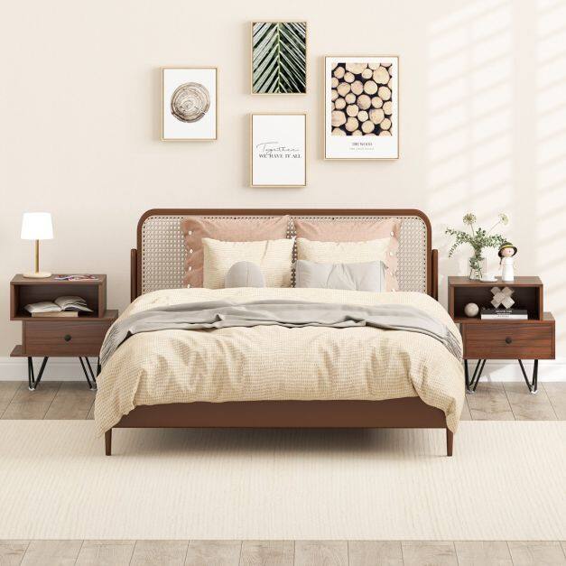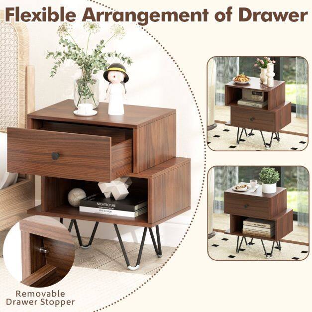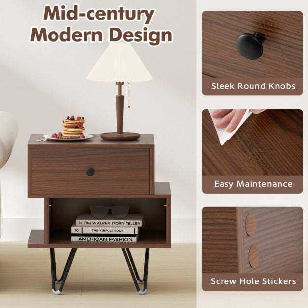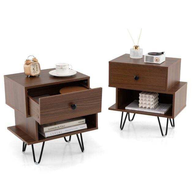Functional Storage Solutions: This nightstand set offers a practical storage solution with a spacious tabletop, a storage drawer, and an open compartment. With plenty of storage space, it allows you to keep your essentials organized and within reach.