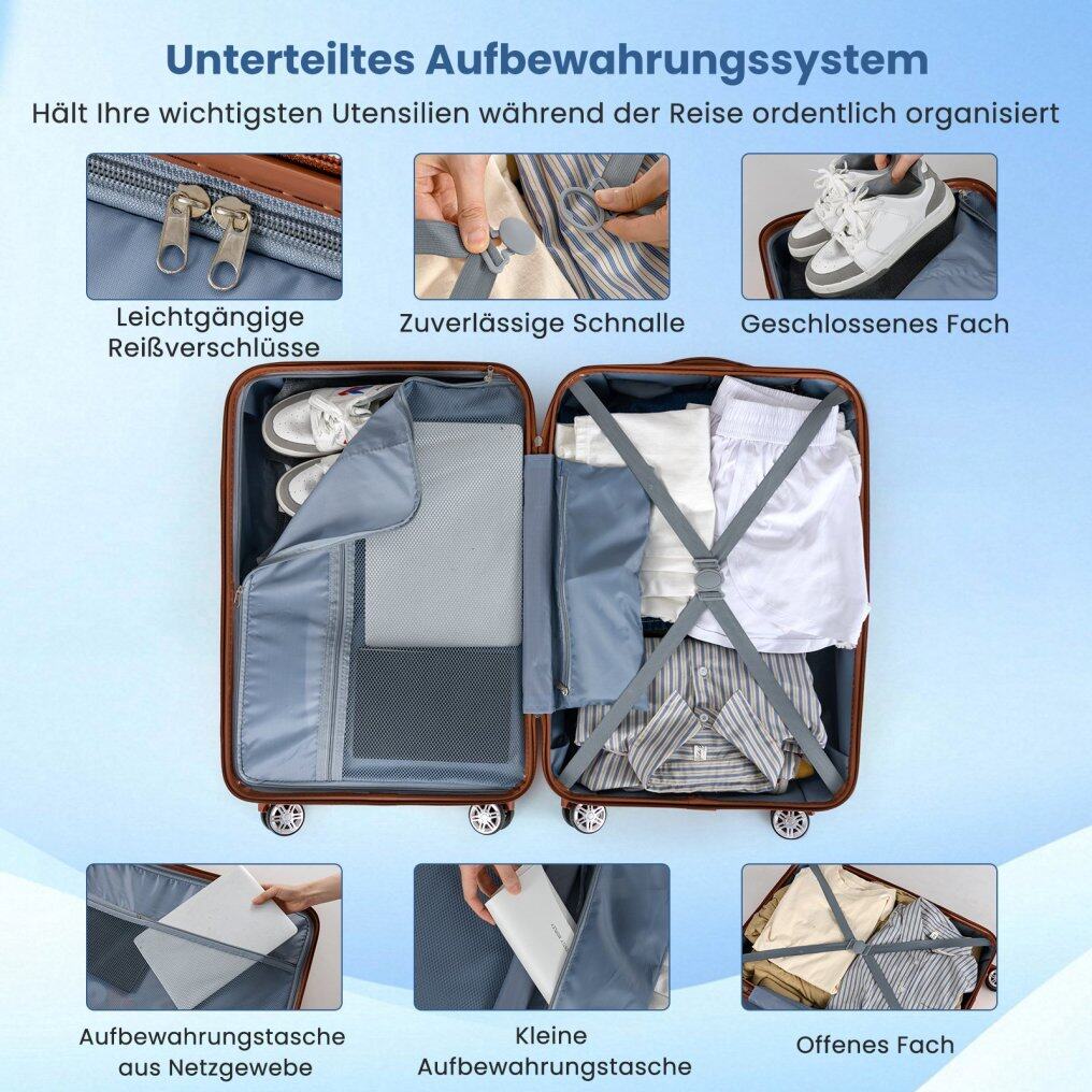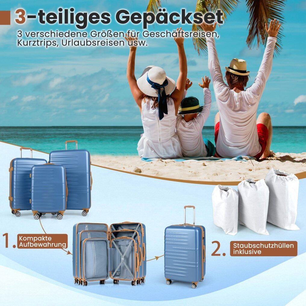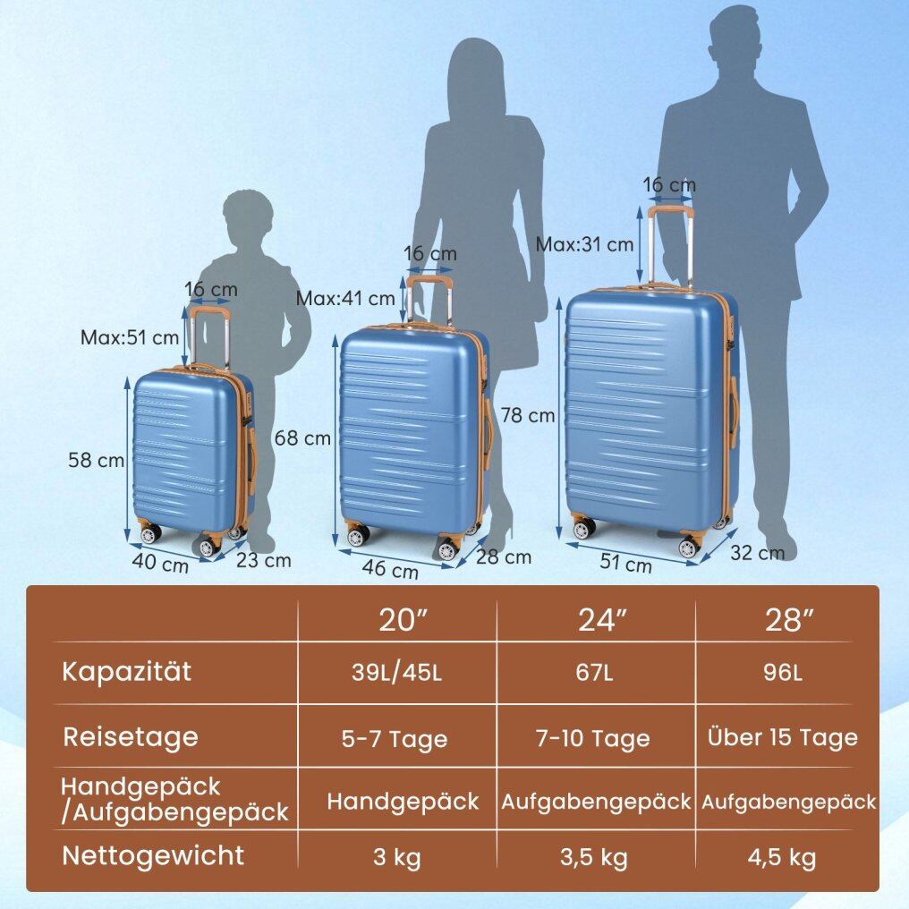 Durable hard-shell construction: The luggage set includes 3 sizes (20", 24", and 28"). Made from high-quality ABS and PC materials, these hard-shell suitcases are robust, scratch-resistant, and water-repellent, while also being easy to clean and lightweight, ensuring a stress-free travel experience.