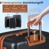 Spinner wheels & telescopic handles: Glide effortlessly through airports and train stations with the advanced 360° quiet wheels that are smooth, non-slip, and wear-resistant. The telescopic aluminum handles are height-adjustable and ideal for people of different heights.