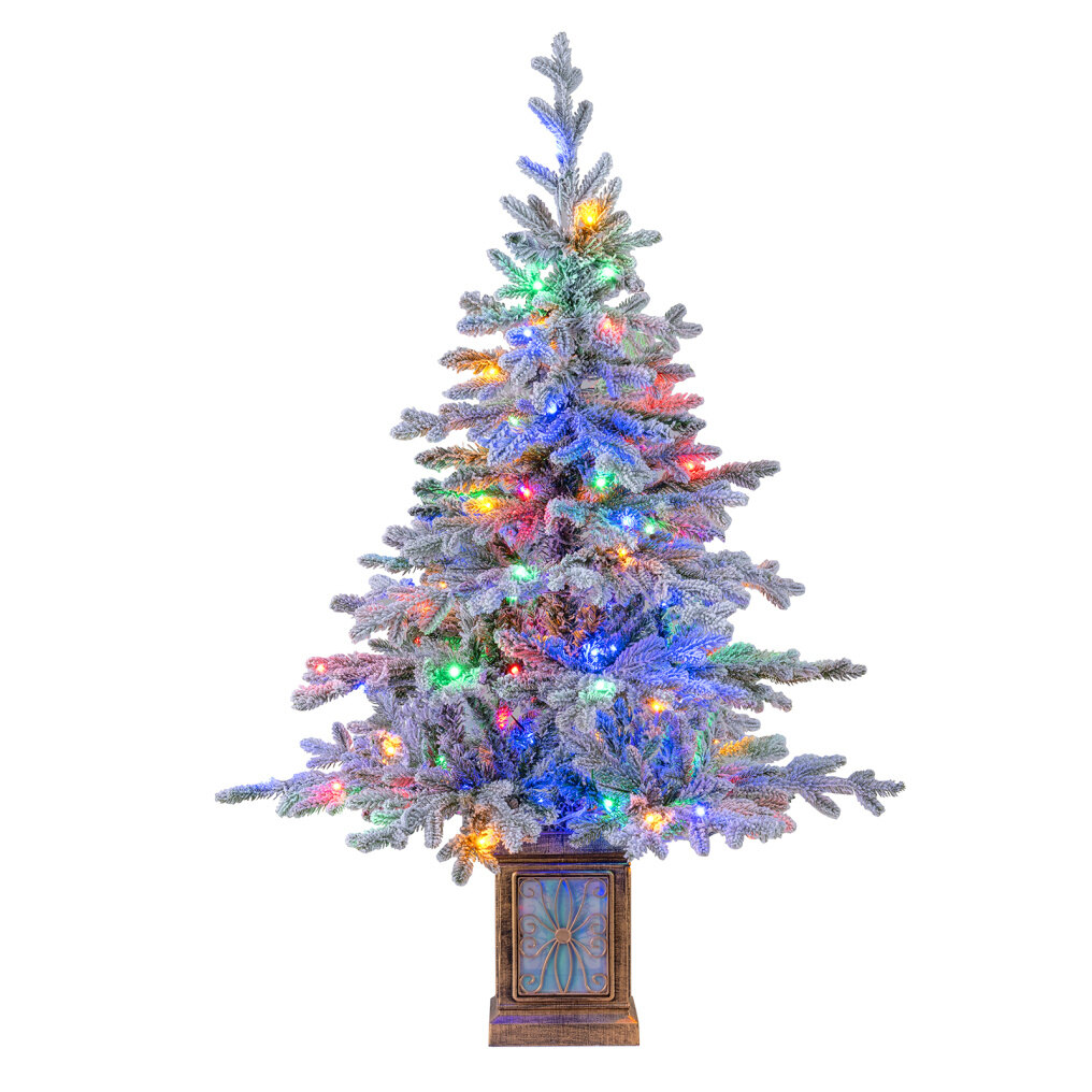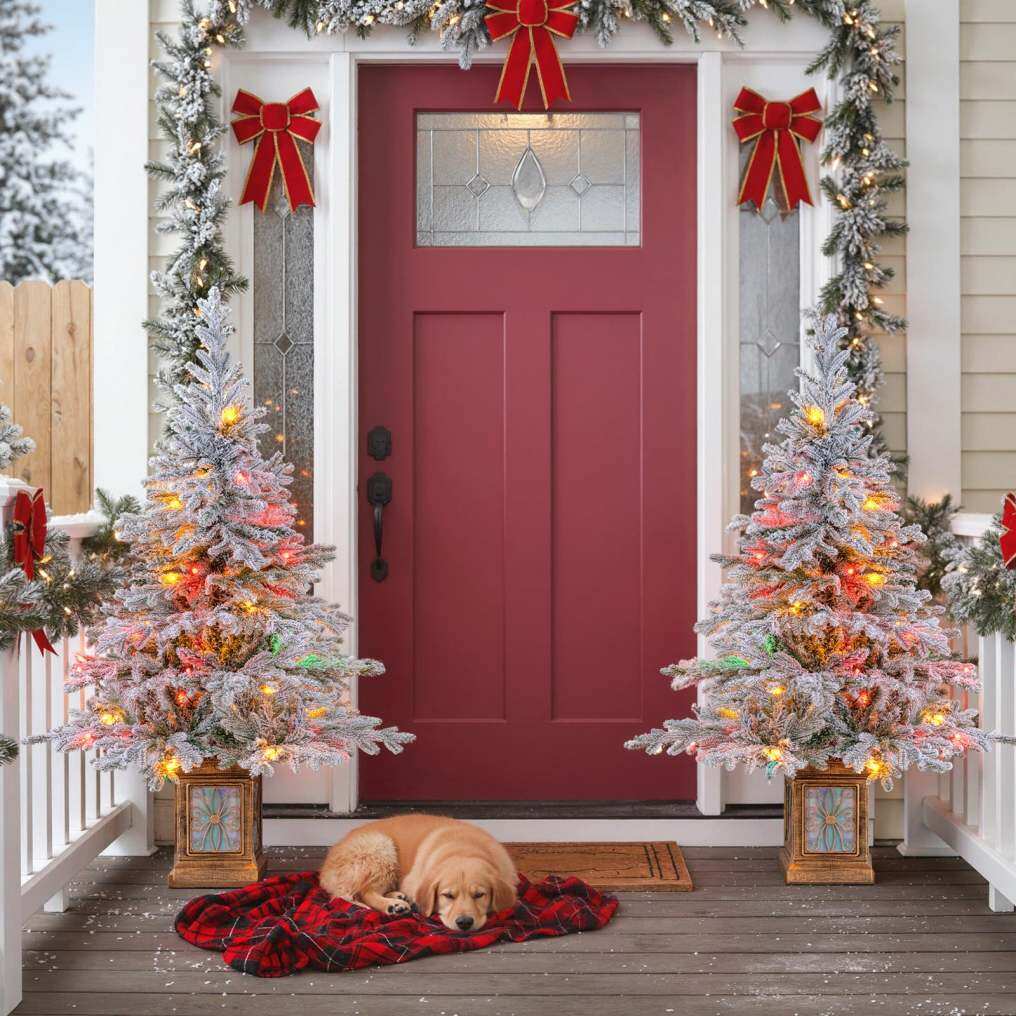 Lush Design & Premium Materials: The 4 ft Xmas tree features 180 flocked branch tips for a naturally full and snowy look. Constructed from new PE and PVC materials, this tree is fireproof, anti-fading, non-allergic, smell-free, and non-deformation.
