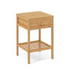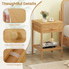 ● Unlock Ample Storage: Dive into the world of organized living with this bamboo nightstand! It boasts a convenient tabletop for your essentials, a handy drawer for those little treasures, and an open shelf for quick access to your favorite reads.