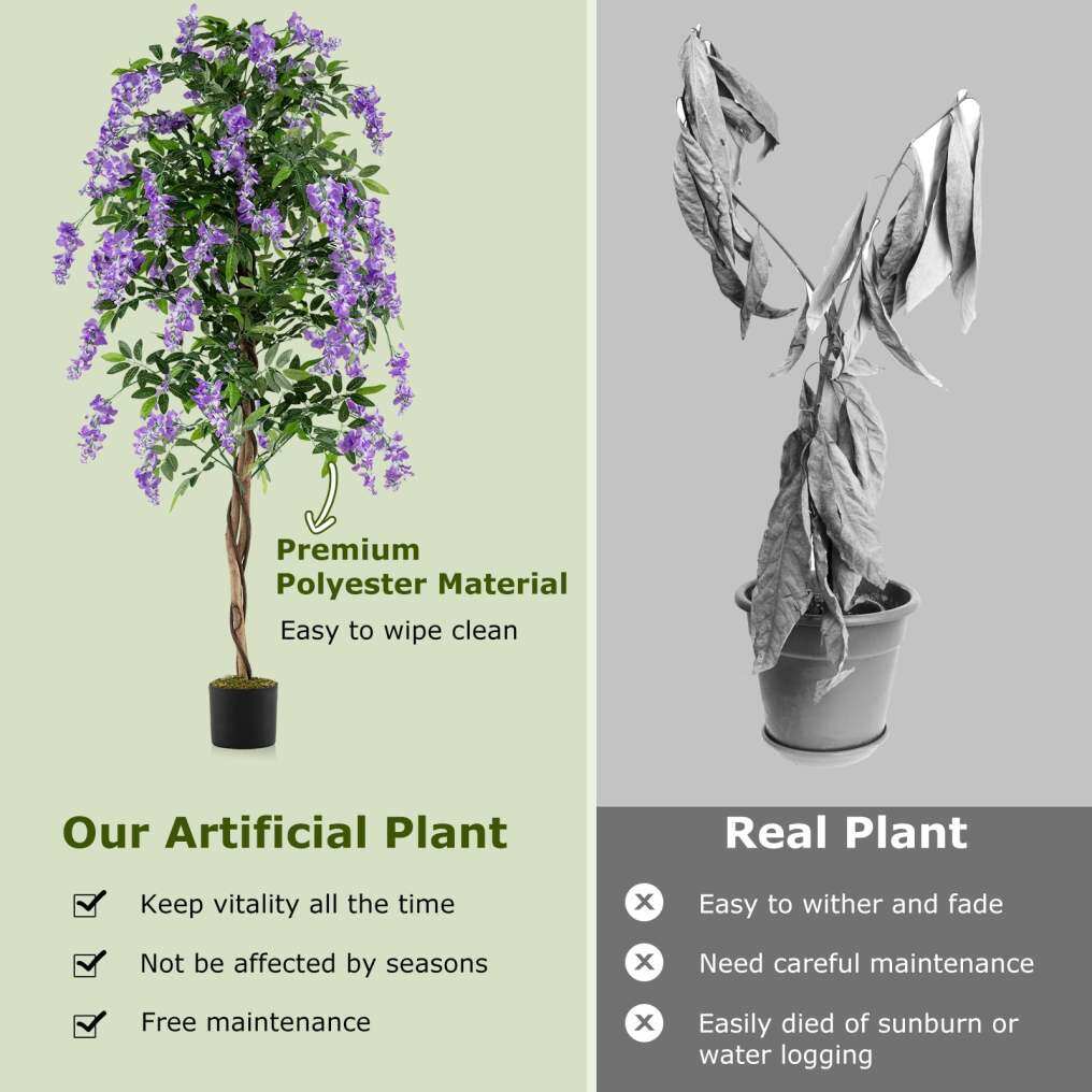 ● Realistic Springtime Wisteria: This 6 ft/180 cm tall artificial tree is adorned with charming wisteria floral and 1260 verdant green leaves, which closely resemble the appearance of wisteria trees for an everlasting spring ambiance in your home.