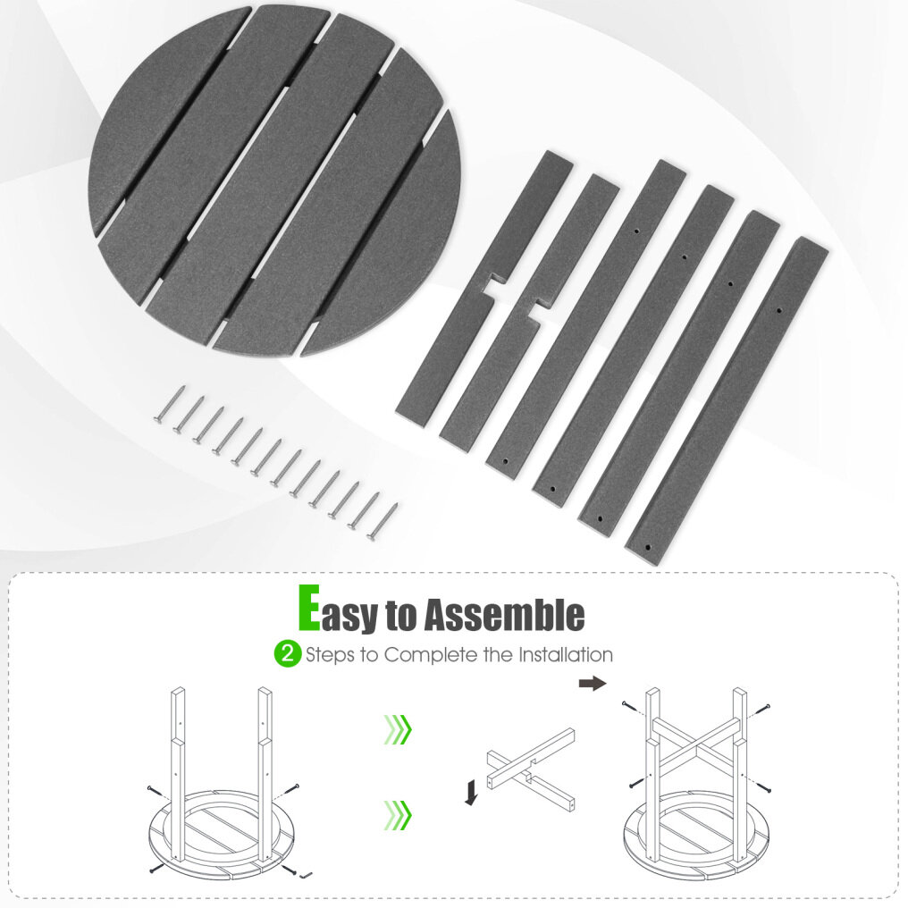 ● Easy to Assemble: The installation of this Adirondack side table is quite easy. Only need 2 steps to complete the installation. Measuring 18" x 18" (Dia x H), this end table matches your outdoor Adirondack chairs and indoor sofas (not included) better.