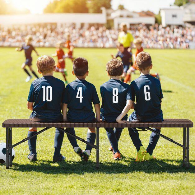 The 4 cm thickened seat is made of premium HDPE which is sunproof, waterproof, and anti-fading for long-lasting outdoor use. And the rattan texture makes the bench more appealing. With sturdy metal legs and safe locking mechanism, the bench offers strong support up to 300 kg. Moreover, the fold-in-half design makes it simple to store and carry. Ideal for picnics, camping, poolside or competitions, the bench seats up to 4, allowing you to relax with your friends. Elevate your outdoor gatherings with this reliable and versatile seating solution. If you are looking for such a product, do not hesitate to buy it!