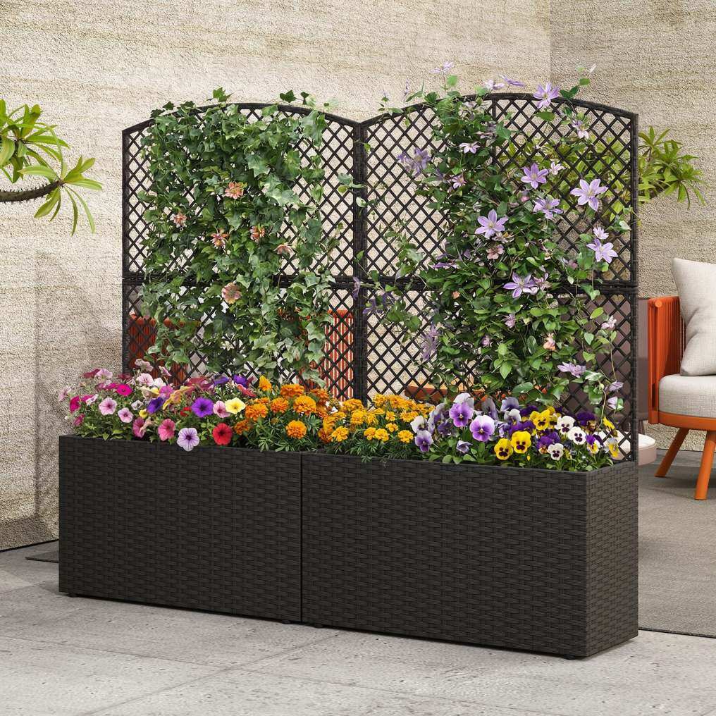 ● Versatile Use: Featuring both a planter box and a climbing trellis, this gardening kit serves as a practical raised garden bed or an elegant privacy screen. It is perfect for naturally hiding AC units, trash bins, or simply creating a living green wall for patios, entryways, and decks.