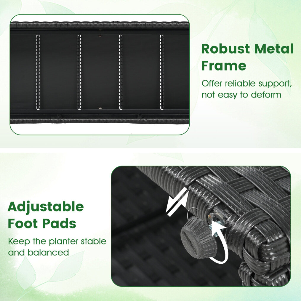 ● Elegant Wicker Craftsmanship: Expertly crafted from hand-woven PE rattan, this outdoor raised garden bed is sun-protective and crack-resistant, ensuring long-lasting outdoor performance. Also, it adds a touch of elegance and sophistication, enhancing balconies and garden patios with timeless charm.