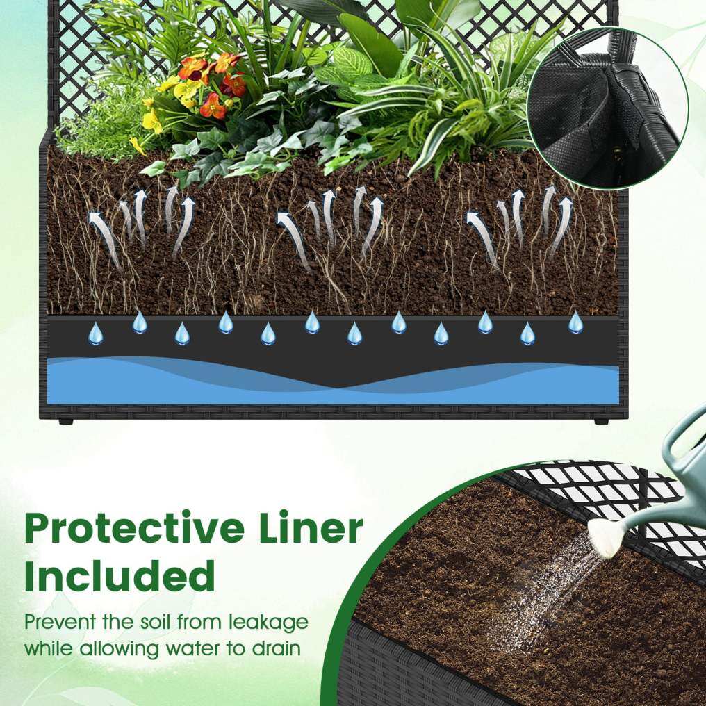 ● Efficient Drainage System: This patio privacy planter is designed a protective liner to prevent soil leakage and promote healthy water flow, making plant care easy and tidy. The flower bed measures 29" x 11" x 49" (L x W x H), and the interior size of the planter box is 27.5" x 9.5" x 9.5" (L x W x H).