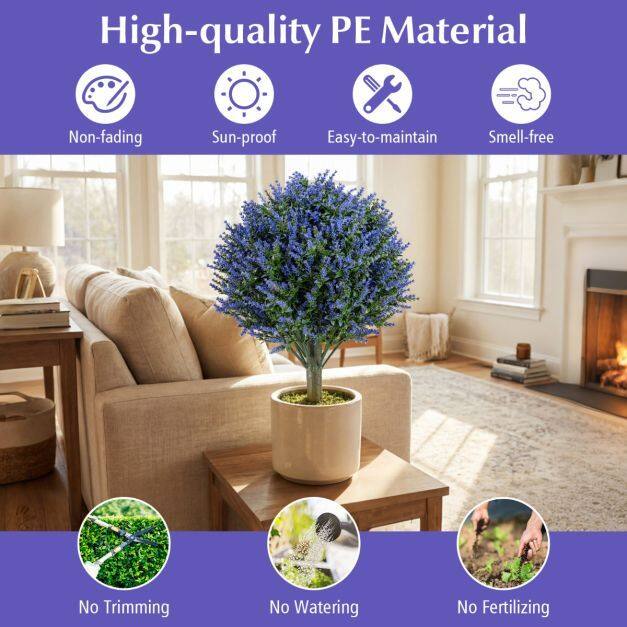 ● Sun-proof Material: Made from premium PE, these fake lavender plant arrangements boldly resist sunlight and fading, staying vibrant in your garden all year round. Also, it remains smell-free and safe for stylish indoor decorating.