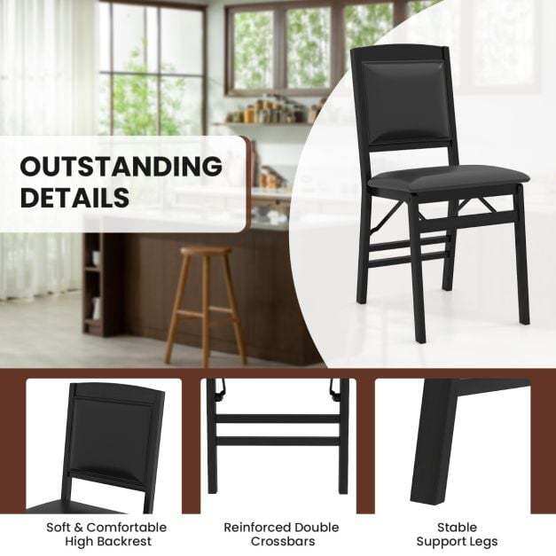 No Assembly and Easy Maintenance: The folding dining chairs are ready to use right out of the box. Moreover, the PVC leather and painted wood surface are easy to clean with a wet cloth, thus ensuring a long service life.