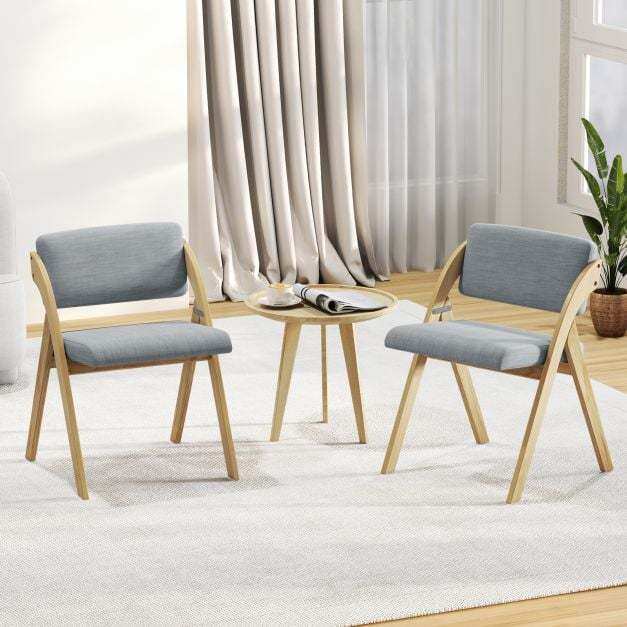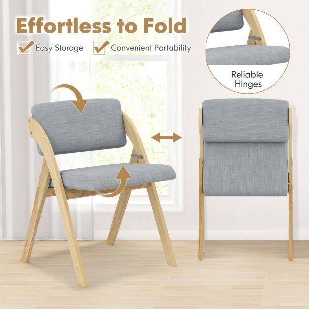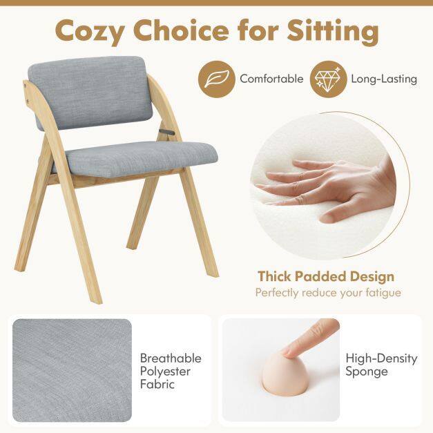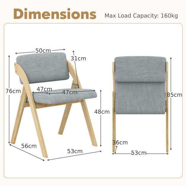 The dining chair set provides a cozy choice for sitting. The soft polyester fabric and elastic sponge fill of the thickly padded backrests and seats feel comfortable and are long-lasting for a long-term use. The kitchen chairs boast sturdy rubber wood legs that offer stability and elegance, supporting up to 355 lbs. Perfect for small spaces, these foldable chairs can be used in various settings beyond the dining room. No assembly required - simply unfold and enjoy a quick and convenient upgrade to your dining space.