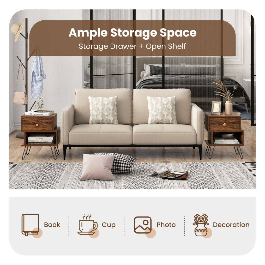 ● Large Storage Space: This nightstand set will provide an awesome storage solution for you! The spacious tabletop is perfect for photo frames, coffee mugs, or decorative items. The drawers can store personal items, while the shelves underneath are ideal for books and magazines.