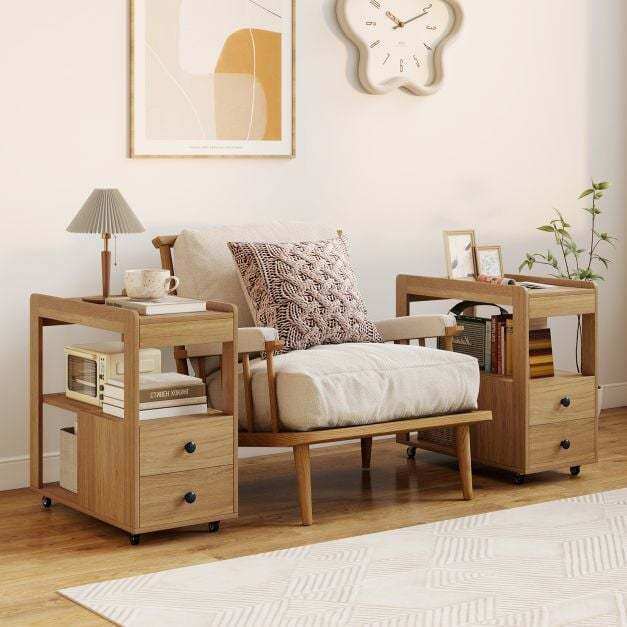 Triple the Storage, Double the Drawers: Imagine having a 3-tier open storage space and 2 drawers all in one end table! This versatile piece keeps your essentials organized and within reach, making it the perfect addition to any room.