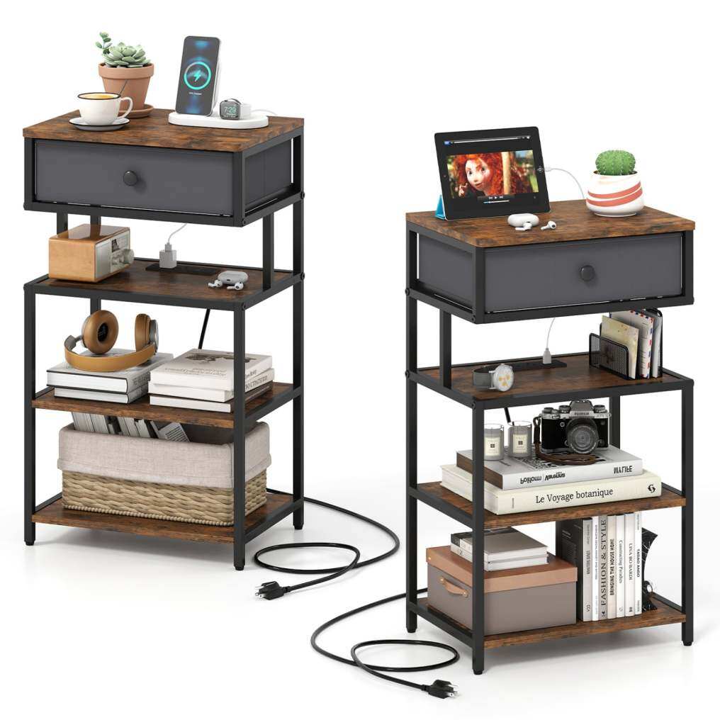 ● Smart Power Supply Design: The built-in power strip on this bedside table set features 2 AC outlets, 1 USB port and 1 Type-C port to charge multiple devices effortlessly. Strategically placed on the second shelf, the charging station minimizes cable clutter and safely prevents water spill hazards.