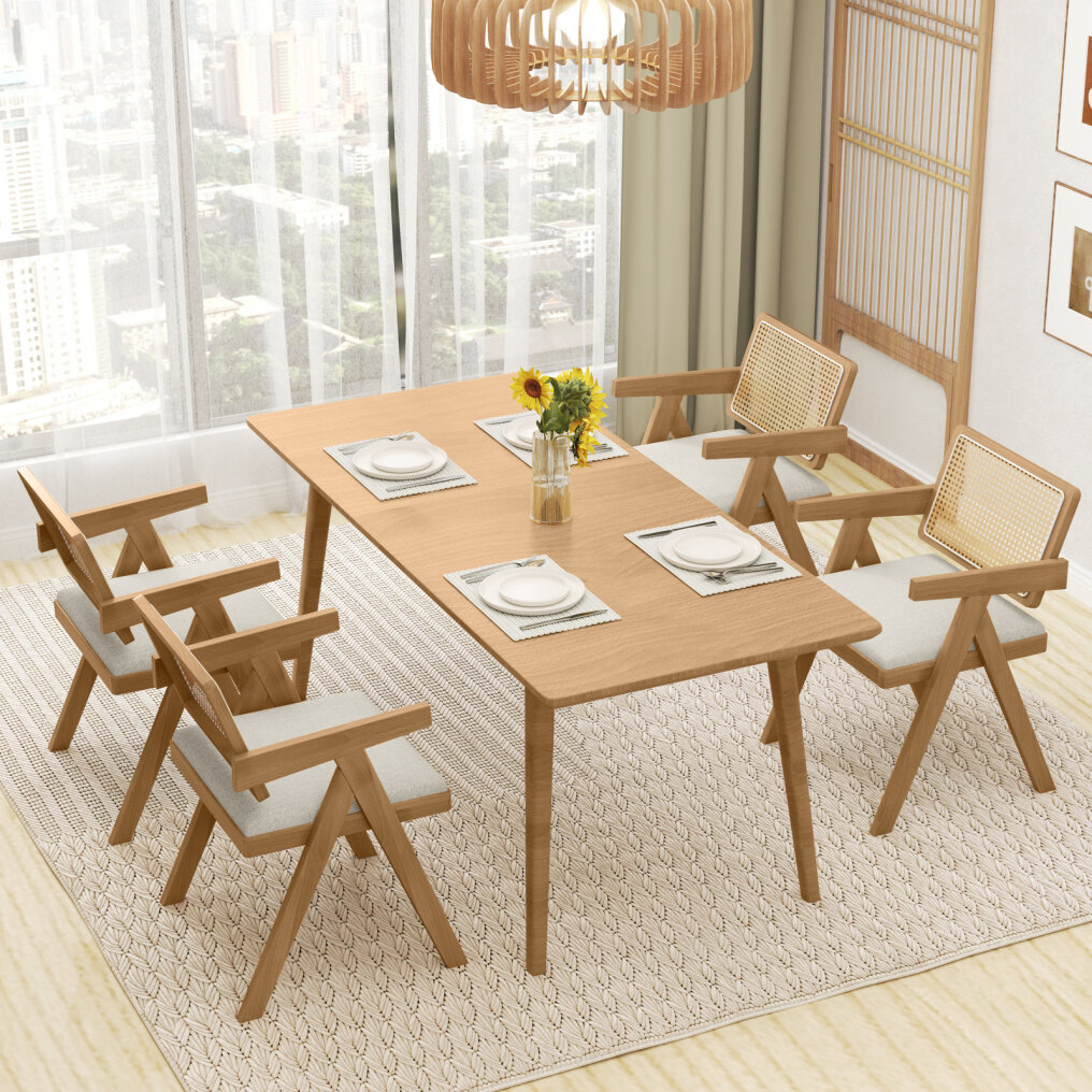 ● Ergonomic Support: The dining chairs are designed with 105° inclined backrests and comfy armrests, aligning perfectly with the natural curve of your body. This design supports prolonged seating by reducing back strain and improving posture.
