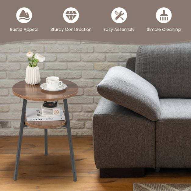 Heavy-duty Metal Frame: To provide reliable support to the 2-tier shelves, the round end table features a robust metal framework that lasts for long thanks to the rustproof coating. In addition, the 3 legs form a stable triangular structure, with non-scratch foot pads at the base to prevent scratching floor.