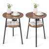 With beautiful wood grain finish, the accent table breathes a rustic appeal to modern living space. There is a 39cm diameter round tabletop and an open storage shelves to offer ample storage space for living room sundries or bedtime essentials. And the sturdy construction made of high-strength metal pipes allows the end table to hold a great weight. What’s more, the rustproof metal frame offers a longer service life. More details, like the sleek edge and non-slip foot pads, will give you a better experience.