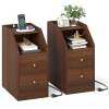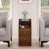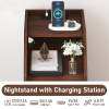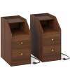Set of 2 Side End Tables with Charging Station Sofa Couch Tables with Shelf Drawers-Walnut