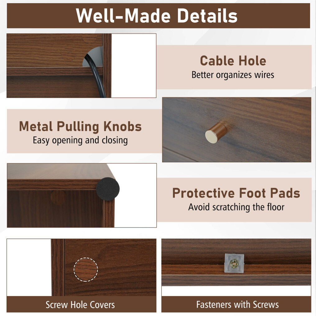 Effortless Maintenance: The inclusion of screw hole covers ensures the bedside table remains polished and refined. Designed for daily living, its smooth surfaces make cleaning convenient and allow you to maintain a pristine appearance with ease.