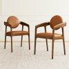 ● Modern Farmhouse Aesthetics: These dining chairs showcase flowing lines and a unique silhouette, exuding rustic charm and modern elegance to your dining area. The rich brown wood finish pairs with vibrant orange PU leather cushions for a striking, warm look.
