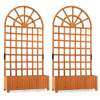 Set of 2 Wooden Raised Garden Bed with Trellis 71" Outdoor Planter Box Privacy Screen-Brown