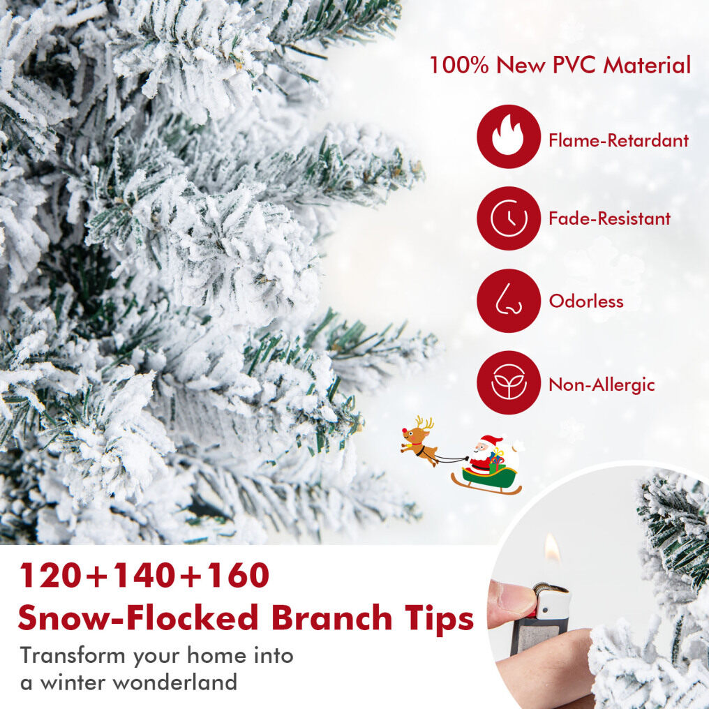 ● Vivid Appearance and Flame-Retardant Material: The artificial Christmas trees feature 120+140+160 snow-flocked branch tips, which can transform your home into a winter wonderland. Besides, the leaves are made of 100% new PVC material, which is flame-retardant, odorless, and non-allergic, ensuring safe use.