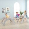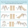 Including a climbing triangle, a climbing arch and a ramp, this playset creates endless fun for children. The climbing triangle and the arch can be used separately. Likewise, they can be combined with the ramp. Designed with 2 different sides, the ramp offers children different climbing and sliding experiences. Likewise, the climbing arch can be transformed into a swing when turned. The Montessori climbing set will accompany children for many years thanks to the solid wood construction. In addition, the burr-free surface and smooth edges protect children's delicate skin. With this triangle climbing set, they will improve both their intelligence and physical strength.