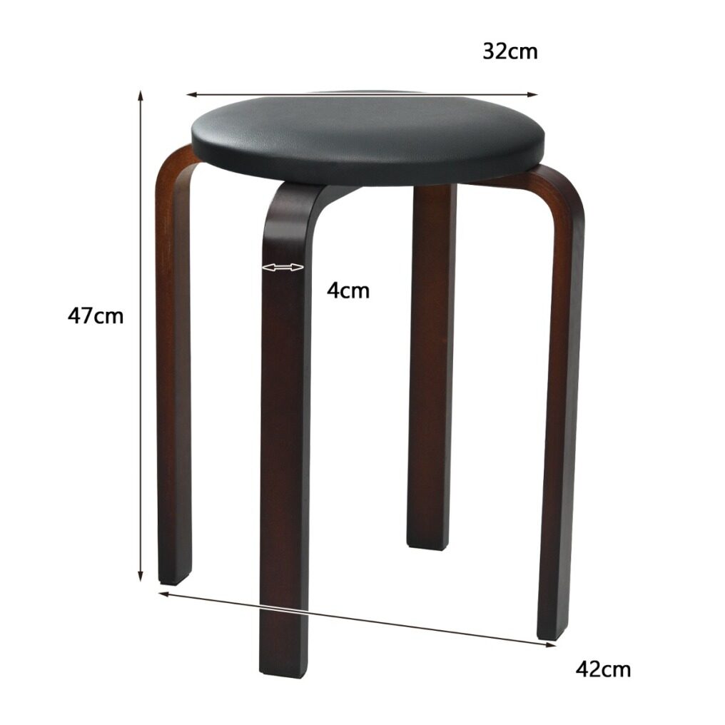 Made of high quality birch, this set of 4 round stools is sturdy and durable with high bearing capacity. The smooth polished surface and rounded corners protect your family from accidental injuries. Each leg is attached with a non-slip foot pad to prevent scratching the floor or making harsh noises. The seat is filled with high-density sponge, which can effectively relieve the fatigue of sitting for a long time. In addition, the waterproof PU leather covering is convenient for daily cleaning. Our bentwood chairs can also be stacked together to save space when not in use. It is an ideal choice for small apartments, restaurants, offices and other places!