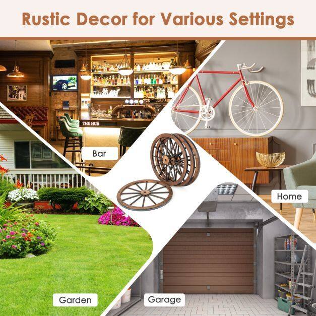 Rustic Decor for Various Settings: Featuring retro style and natural wood grain, the western style wagon wheel showcases timeless appeal. Wherever you display them, they will be the striking focal point that effortlessly elevates the ambiance of any room.