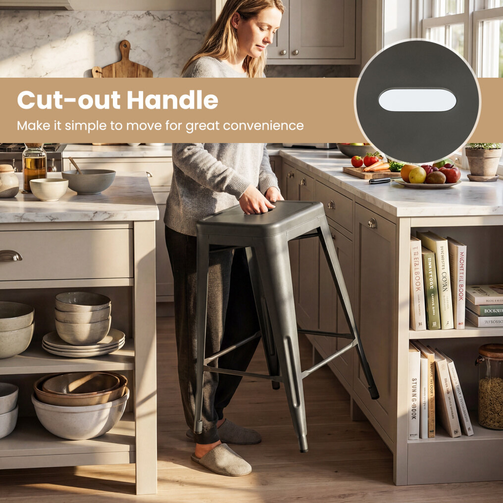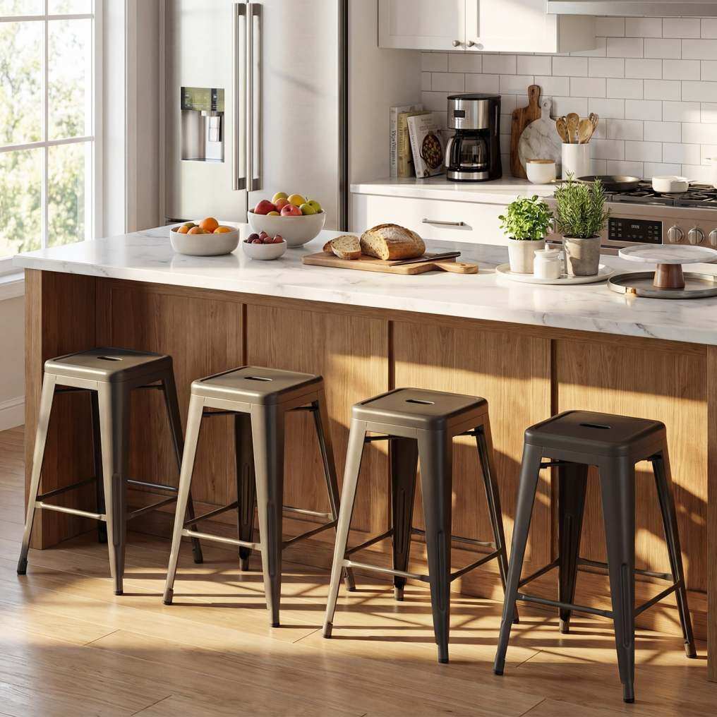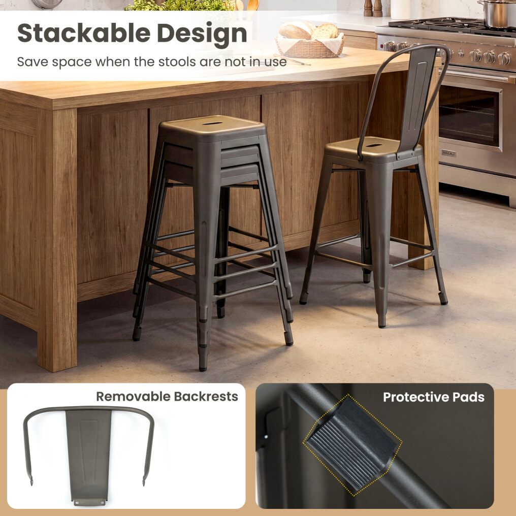 ● Space-saving Stackable Design: These metal bar stools feature a clever stackable design that saves valuable space in your home. By removing the backrests, you can easily stack all 4 stools, while protective pads prevent scratches on the seats.