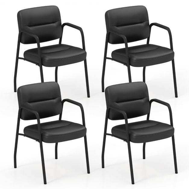 Set of 4 Waiting Room Chairs with Integrated Armrests No Wheels-Black
