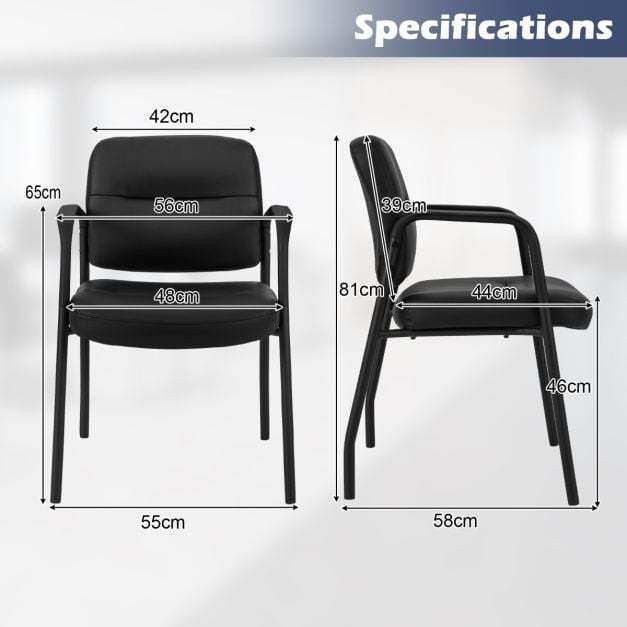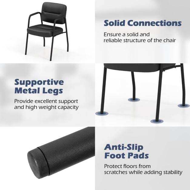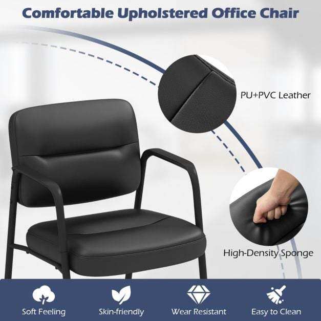 These upholstered reception chairs are designed with PU and PVC leather and soft sponge for more sitting comfort. The curved backrest provides comfort and support for guests and visitors while they wait. More, the armrests offer a convenient place to rest their arms and create a welcoming and inviting atmosphere for guests. Crafted of sturdy metal construction, the reception chairs are built to last and withstand daily use. The waiting room chairs create a comfortable and stylish seating area for users.