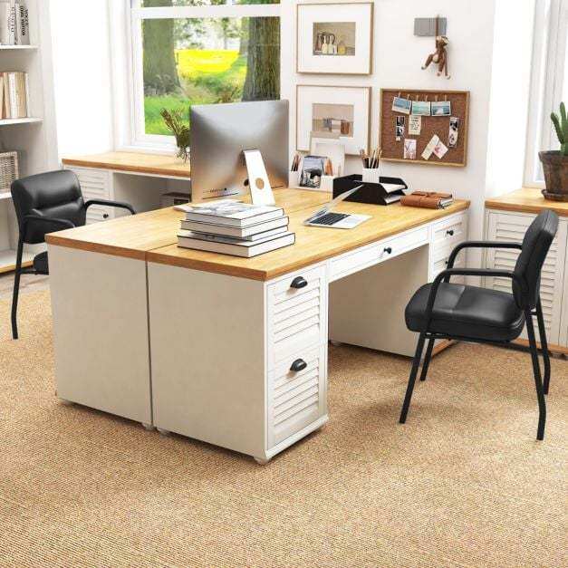 Ergonomic Guest Chairs: Featuring curved backrest and wide seat, the guest chairs provide added support and relaxation for users during extended periods of waiting or meetings. The integrated armrests take the comfort to next level.