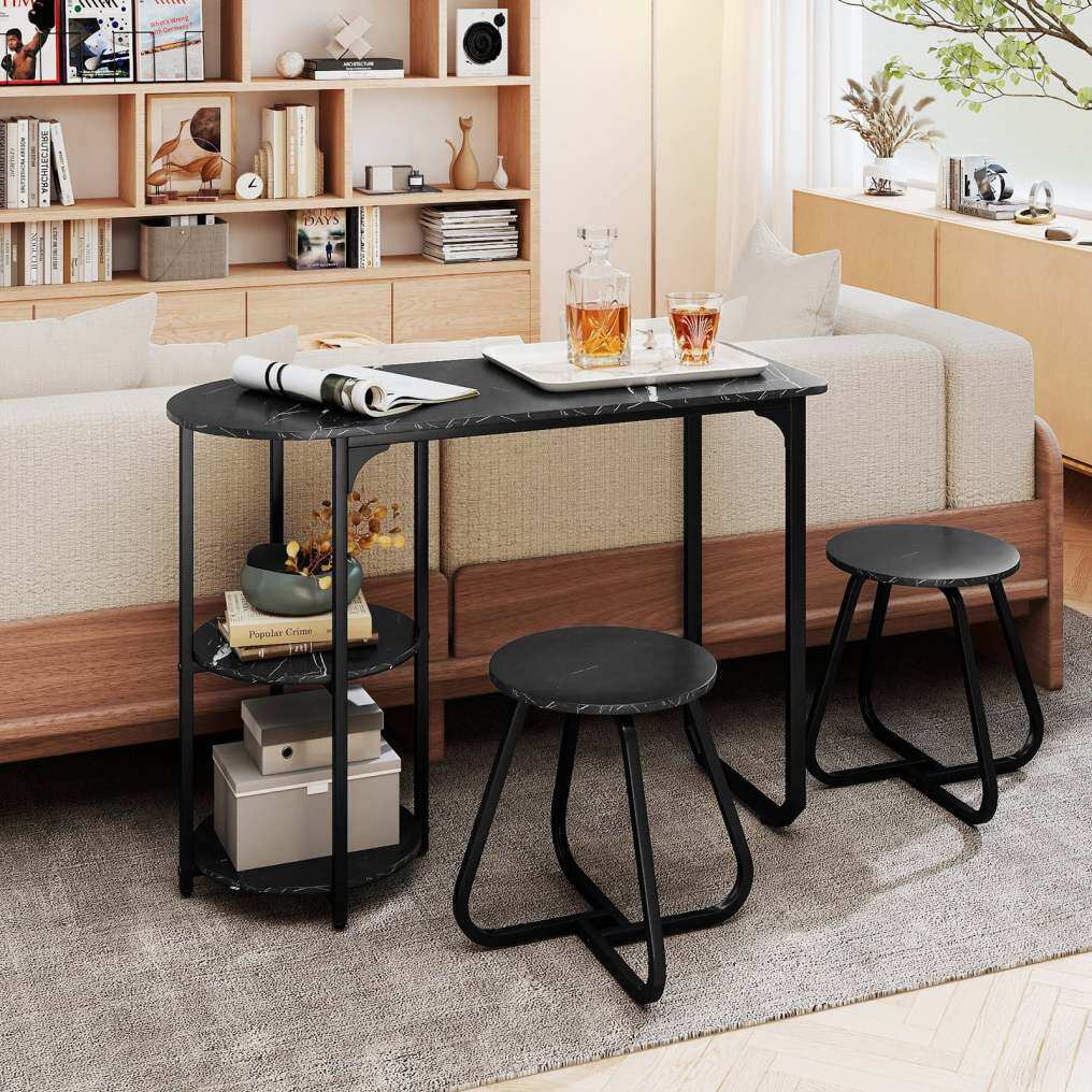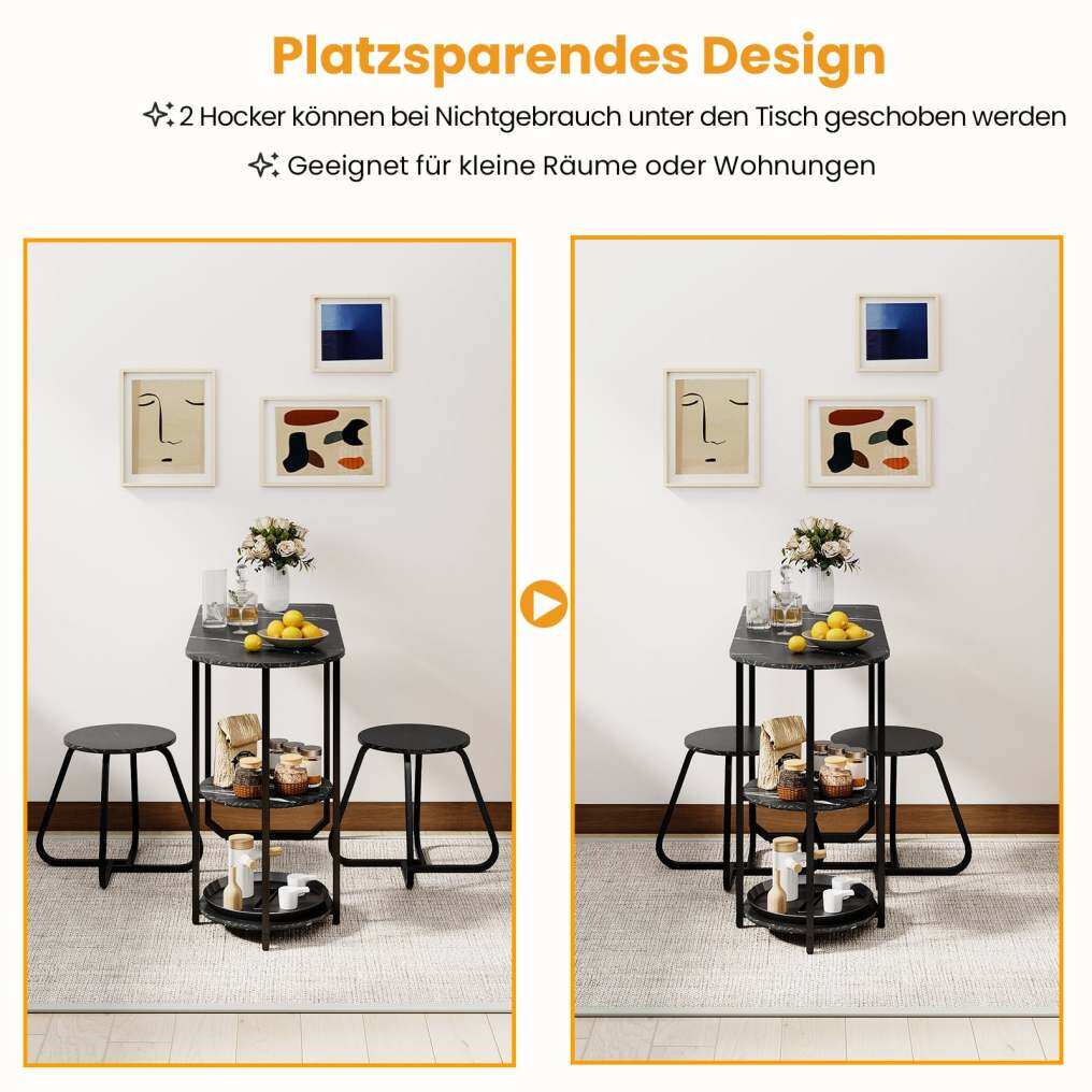 Space-saving design for small spaces: The two stools can be pushed under the dining table when not in use, maximizing your living space. This set is ideal for compact apartments, small kitchens, breakfast nooks, or student dorms where every inch counts.